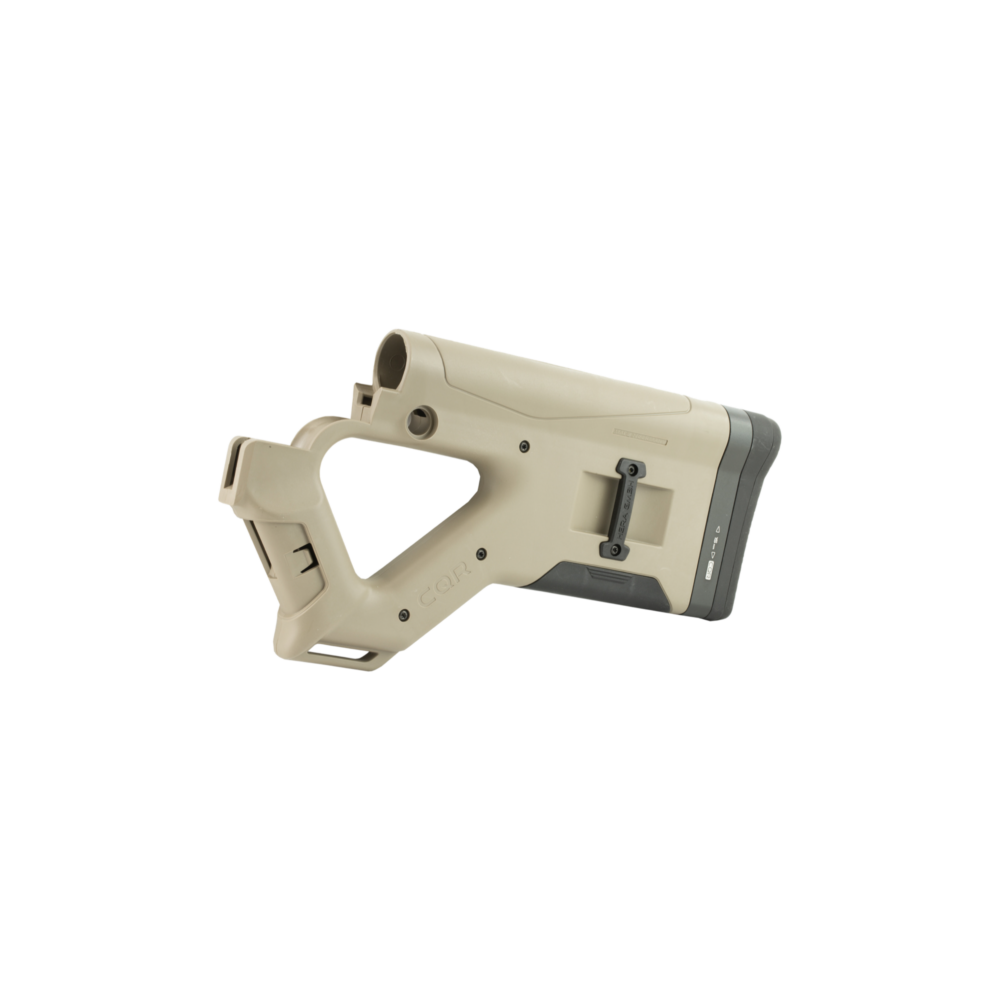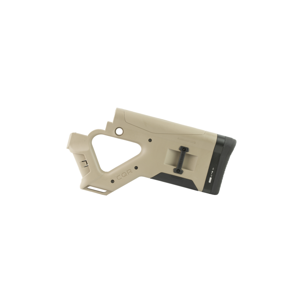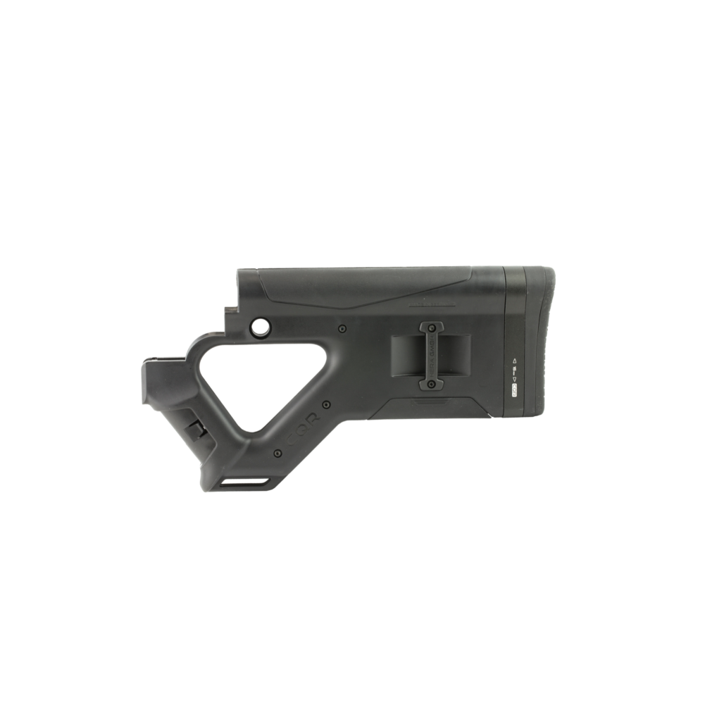 The CQR is a lightweight compact improvement over the traditional fixed stock and the integral angled grip provides better control and accuracy.